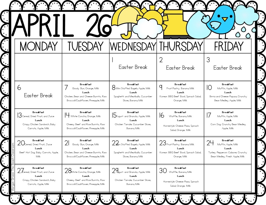 Every student may receive a complete, nutritious breakfast and a complete lunch at absolutely no charge. There is no need to sign up, complete any forms or submit income applications; every student is automatically eligible. Finally, we will provide balanced, delicious meals that meet all federal and state nutrition guidelines. A menu will be shared in advance for families to consider for the upcoming week. April's menu is included below.